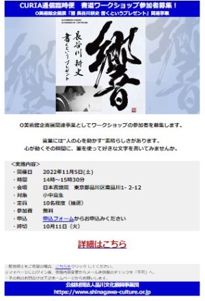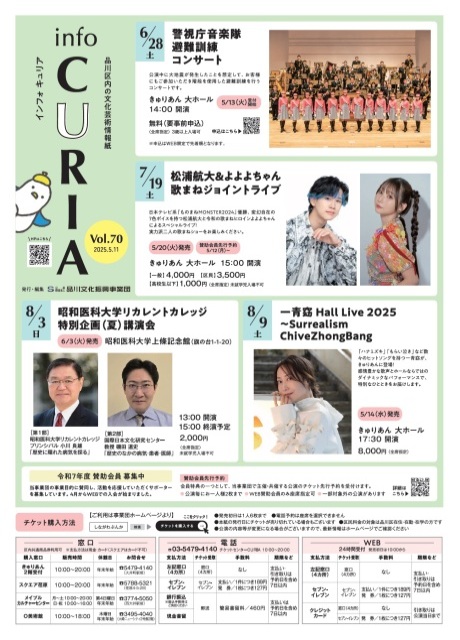 公益財団法人品川文化振興事業団では、文化芸術総合紙「インフォ・キュリア」、メールマガジン「CURIA通信」、各種SNSで区内の文化芸術情報を提供しています。