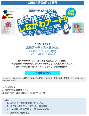 品川区内の文化芸術情報紙 「インフォ・キュリア」