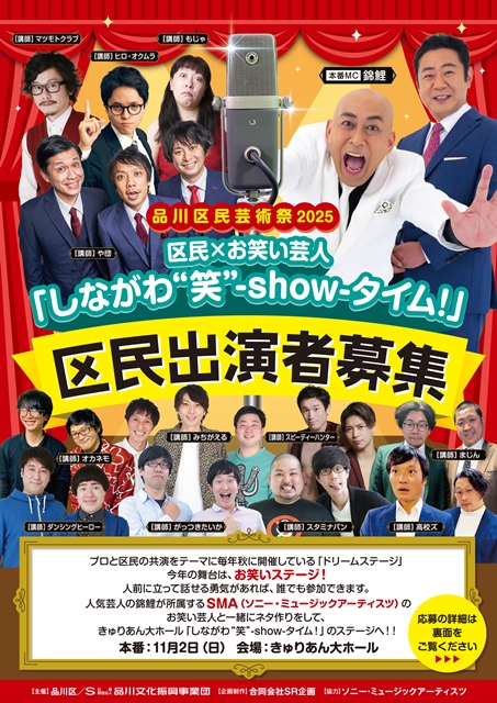 今年は人気芸人の錦鯉が所属するSMA(ソニー・ミュージックアーティスツ)のお笑い芸人と一緒にネタ作りをして、「しながわ“笑”‐show‐タイム!」のステージへ!!