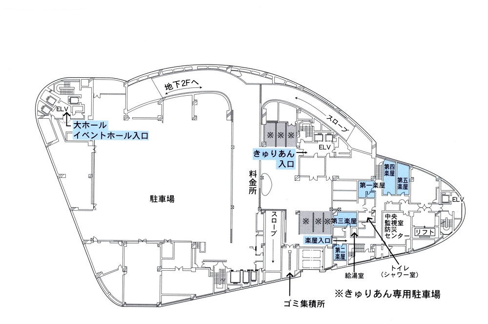 7階 イベントホール 音楽スタジオ リハーサル室 茶室 応接室 大ホール用第1~3楽屋