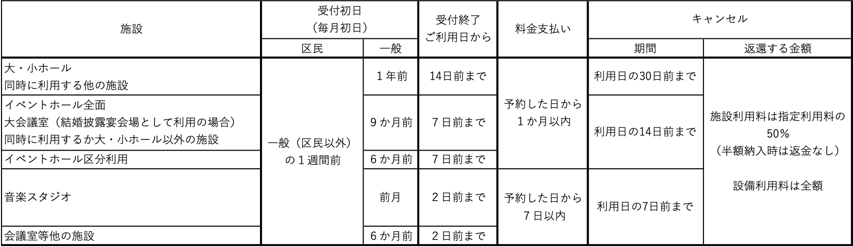 ※利用時間は準備・後片付けに要する時間も含ます。時間内にすべて終了するよう必すお守りください。