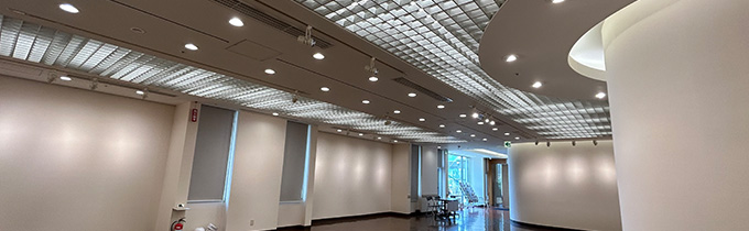 施設内の照明をすべてLEDに交換し、壁紙を張り替えました。