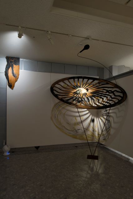 80年代の絵画・インスタレーション等の初期作品から、90年代以降のCG・ メディアを取り入れた活動、メディアインスタレーションとして地球や自身の内観をオマージュにした立体作品のほか、芸術情報学、伝統芸術・考古学のメディアアーカイブなどの研究者としての実績も紹介。(松平不昧大崎苑復元CG/江戸期の庭園を現在の地形に合わせて復元、等)