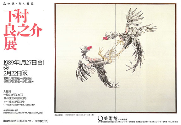 小・中生100円(50)円 ※( )内は20名以上の団体料金戦後日本画の革新者であり、現代美術界の中で独自の存在として知られる下村良之介の初の本格的な回顧展。 代表作50数点と銅版画、“やけもの”を含め展示し、下村氏の全貌を初めて明らかにしました。