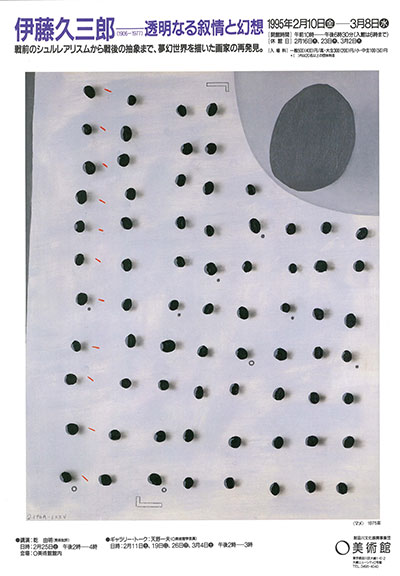 小・中生100円(50)円 ※( )内は20名以上の団体料金シュルレアリスムをベースにしながら、清冽なまでの香気と叙情をたたえた絵画で知られる伊藤久三郎(いとう きゅうざぶろう、1906~77)の東京における本格的な回顧展。