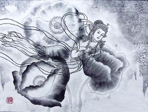 私達は、今の時代の生活を基に、水墨画、又墨の抽象画を描いています。