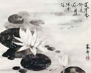 洛陽会で学ぶ会員達の水墨画、書の作品発表会。
