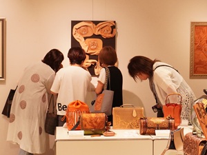 これが革?と言う作品から身近で使える小物やバッグまで、革の作品を展覧しています。