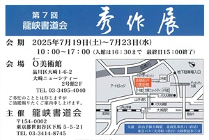 季節の移ろいは、年々早く感じられる昨今、第88回龍峡書道展を終え、ホットする間もなく構想を練り、中世書道を貫く難しさを感じ乍ら、現代に通じる書に纏め上げた努力作を是非、ご覧戴きたいと思います。