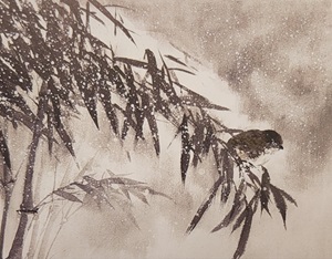 洛陽会で学ぶ会員達の水墨画、書の作品発表会。