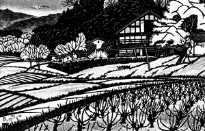 黒い和紙をカッターナイフで切り抜き台紙に貼って完成させる絵画で、剪画は日本の伝統的な技法と素材を現代に活かした新しい分野のアートです。