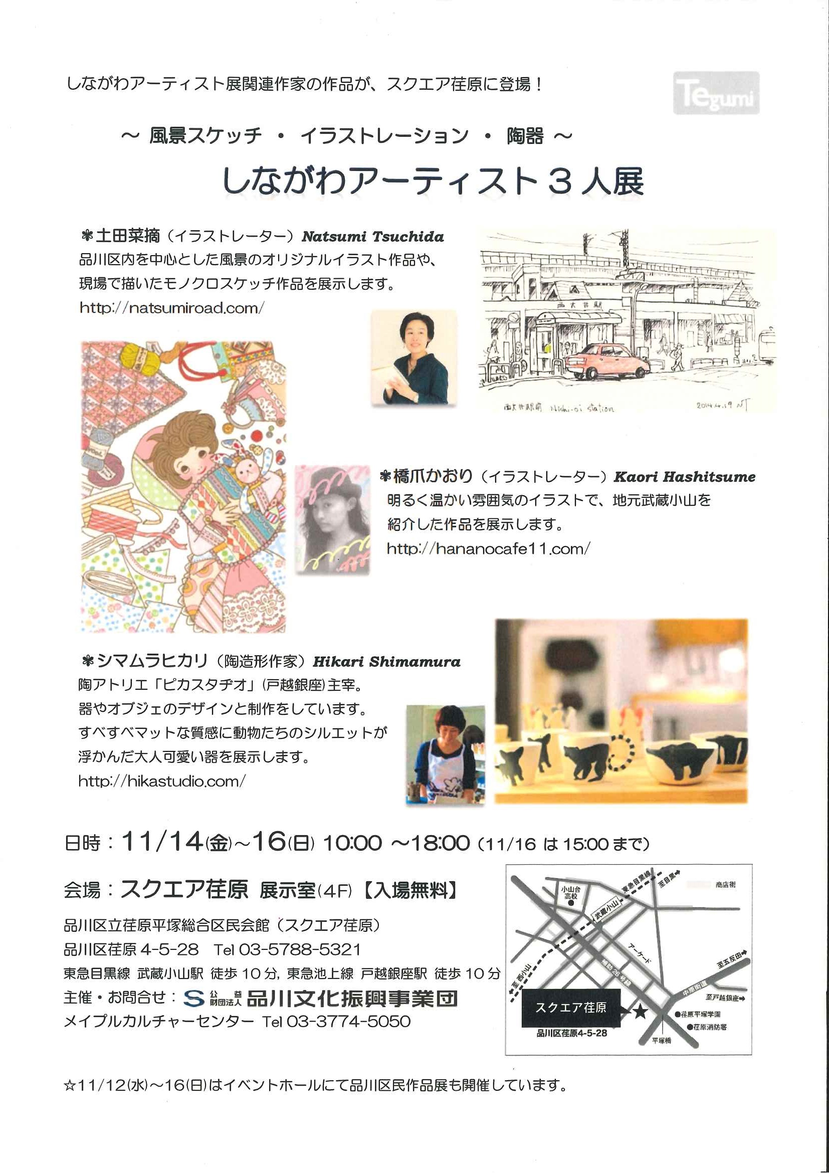 しながわアーティスト3人展2014年11月14日(金) 〜 2014年11月16日(日)