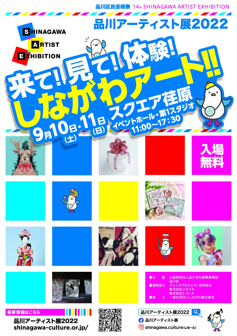 11名のアーティストによる作品展示、アート体験、パーフォーミングアーティストによるワークショップやステージ発表など、わくわくがいっぱい。品川アート活動応援マスコットの着ぐるみしなーとも登場します!
