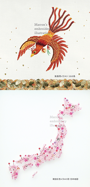 装画、子供向け雑誌の挿絵、広告、雑貨などに刺繍イラストを提供。