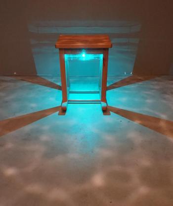 触る、すわる、姿勢を変える、立ち上がる、人々のさまざまな動きが、波紋となり床面に映し出される
