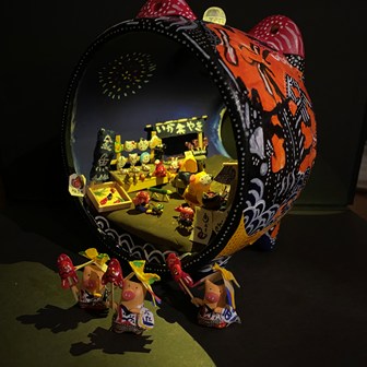 ミニチュア郷土玩具・蚊やり豚アート(箱庭)作家