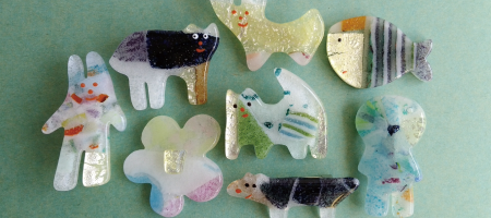 穏やかな様で不思議に刺激的な木のカラクリおもちゃと、見ていて和めるガラスの小物を作っています。木の作品は動かすとハッと驚きがあり、思わず童心に返り、ガラスは何だか開放的な気分になります。【 アート体験 】笛の絵付け700円