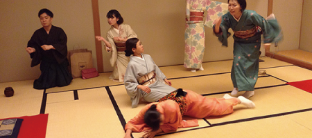 和の輪。和をモチーフに輪を広げていこうという東京タンバリンわのわの新作は、表千家、裏千家のある「お茶」の世界と人間の表裏を、巧みに絡めて描き出す、「表と裏」。演劇を楽しみながら、いつしかお茶の世界にいざなわれていく空間を作り上げ、終演後は抹茶とお菓子を楽しみます。また、着物でご来場のまたは品川区在住・在勤・在宅の方は割引あり!演劇と着物と茶道がコラボする空間がくりひろげられます。