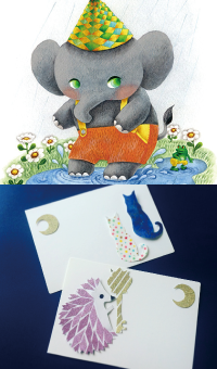 主に切り絵を作っています。が、「自分の表現をする」というのが一番やりたいことなのでそれにこだわらず、面白そうな表現を常に模索しています。毎年12月に一年のまとめの個展を主にデザインフェスタギャラリーで開いています。【 アート体験 】オリジナル切手風シールを作ろう/500円・ゆらゆらモビールを作ろう/1,000円
