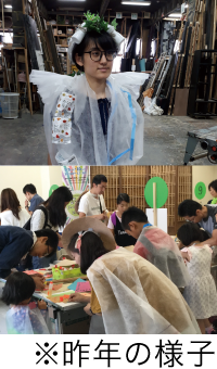 カラフルな廃品や普段捨ててしまうもので、オリジナルコスチュームを創作して、ステージで踊ろう!ワークショップ・ナビゲーターにプロの衣裳家や舞台美術家、建築家を招いて、オリジナルコスチュームや様々なアイテムを作ります。