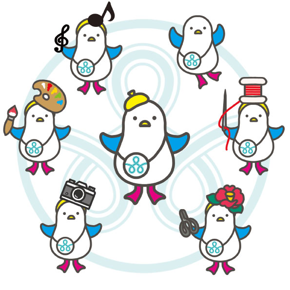 マスコットデザインは、「品川ゆかりアーティスト」のみなさんから募集をし、一般投票で決まりました。